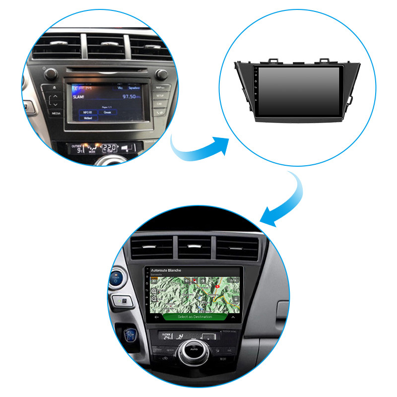 도요타 프리우스 2013+를 위한 무선 블루투스 터치 스크린 카 네비게이션 9 인치